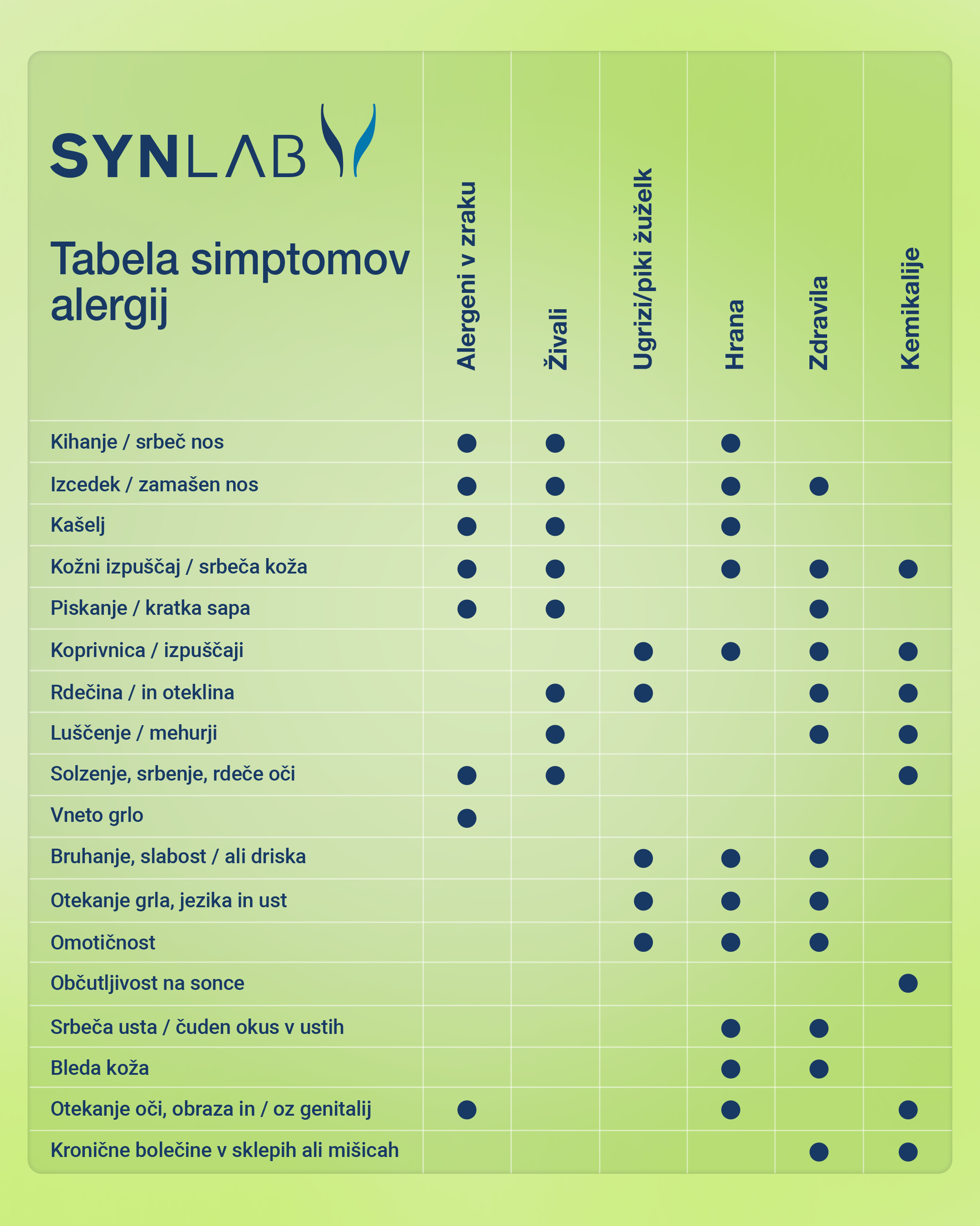 Seznam alergenov, na katere testiramo najdete TUKAJ.